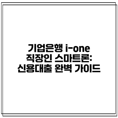 기업은행 i-one 직장인 스마트론: 신용대출 완벽 가이드