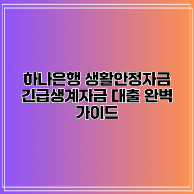 하나은행 생활안정자금 긴급생계자금 대출 완벽 가이드