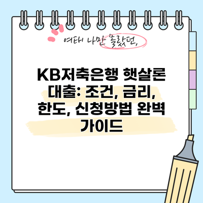 ✅ KB저축은행 햇살론 대출 조건과 혜택을 자세히 알아보세요.