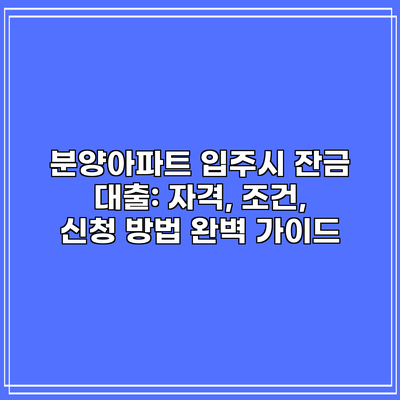 분양아파트 입주시 잔금 대출: 자격, 조건, 신청 방법 완벽 가이드