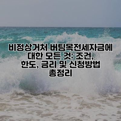 비정상거처 버팀목전세자금에 대한 모든 것: 조건, 한도, 금리 및 신청방법 총정리