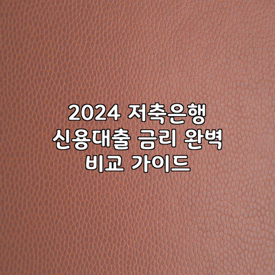 여러분, 저축은행 신용대출을 찾고 계신가요? 2024년 최신 금리를 꼼꼼히 비교해보고 최적의 금융 상품을 선택할 수 있는 기회입니다. 신용점수에 따라 다르게 적용되는 대출 금리를 이해하시면, 대출 승인 가능성을 높일 수 있답니다. 이번 가이드를 통해 신용대출 상품과 금리의 모든 것을 알아보세요!