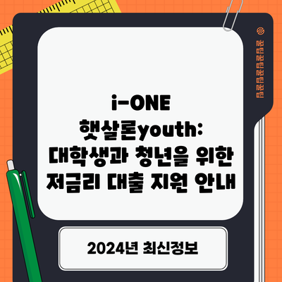 i-ONE 햇살론youth: 대학생과 청년을 위한 저금리 대출 지원 안내