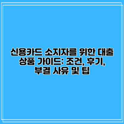 신용카드 소지자에 대한 대출 상품은 여러 선택지가 있어 많은 사람들이 관심을 갖고 있죠. 특히, 무직자나 저신용자도 대출을 받을 수 있는 기회를 제공받기 때문에 매력적입니다. 이 포스팅에서는 신용카드 소지자 대출의 TOP4 상품과 그 조건, 후기, 부결 사유까지 총체적으로 살펴보도록 할게요.