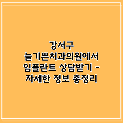 서울 강서구에 위치한 늘기쁜치과의원에서는 임플란트에 대해 체계적이고 전문적인 상담을 제공하고 있습니다. 치아 문제는 우리의 삶의 질에 큰 영향을 미친다는 점에서, 정확하고 신뢰할 수 있는 정보를 기반으로 한 상담이 매우 중요합니다. 이번 포스트에서는 늘기쁜치과의원의 임플란트 서비스에 대한 상세 정보를 제공해 드릴게요.