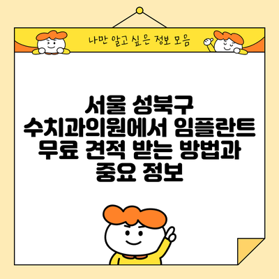 서울 성북구 수치과의원에서 임플란트 무료 견적 받는 방법과 중요 정보