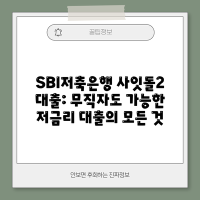 SBI저축은행 사잇돌2 대출: 무직자도 가능한 저금리 대출의 모든 것