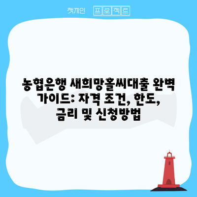 농협은행 새희망홀씨대출 완벽 가이드: 자격 조건, 한도, 금리 및 신청방법
