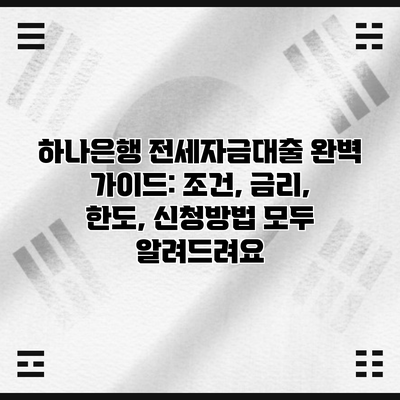 하나은행 전세자금대출 완벽 가이드: 조건, 금리, 한도, 신청방법 모두 알려드려요