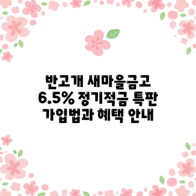 반고개 새마을금고 6.5% 정기적금 특판 가입법과 혜택 안내