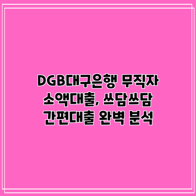 DGB대구은행 무직자 소액대출, 쓰담쓰담 간편대출 완벽 분석