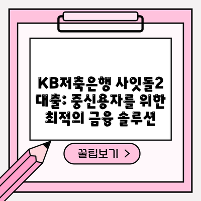 KB저축은행 사잇돌2 대출: 중신용자를 위한 최적의 금융 솔루션