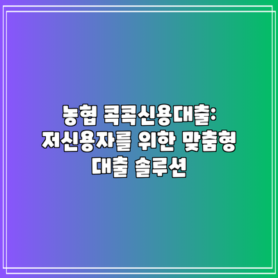 농협 콕콕신용대출: 저신용자를 위한 맞춤형 대출 솔루션