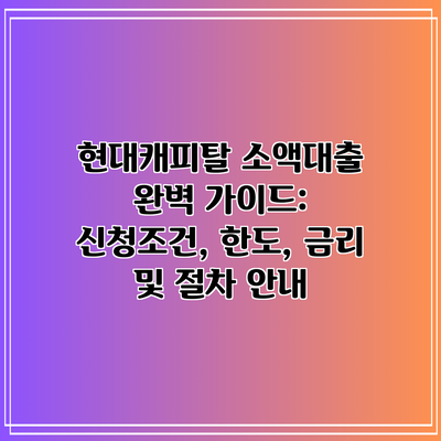 현대캐피탈 소액대출 완벽 가이드: 신청조건, 한도, 금리 및 절차 안내