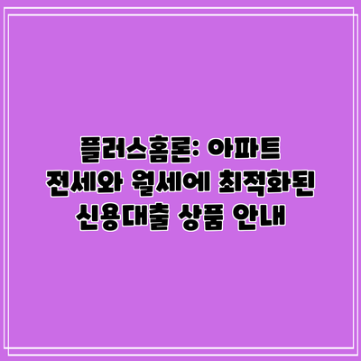 플러스홈론: 아파트 전세와 월세에 최적화된 신용대출 상품 안내