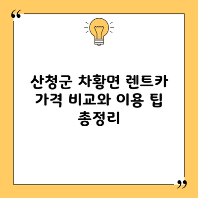 산청군 차황면 렌트카 가격 비교와 이용 팁 총정리