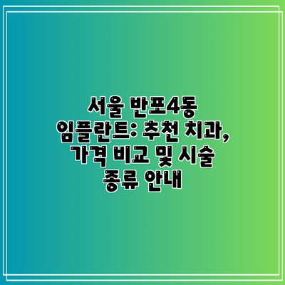 서울 반포4동 임플란트: 추천 치과, 가격 비교 및 시술 종류 안내