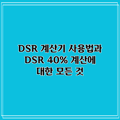 DSR 계산기 사용법과 DSR 40% 계산에 대한 모든 것